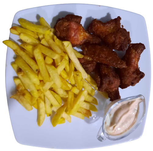 Nuggets de pui cu cartofi pai și sos